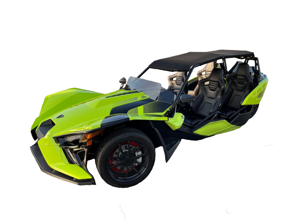 Our 4 passenger Slingshot Rentals have additional air cooling